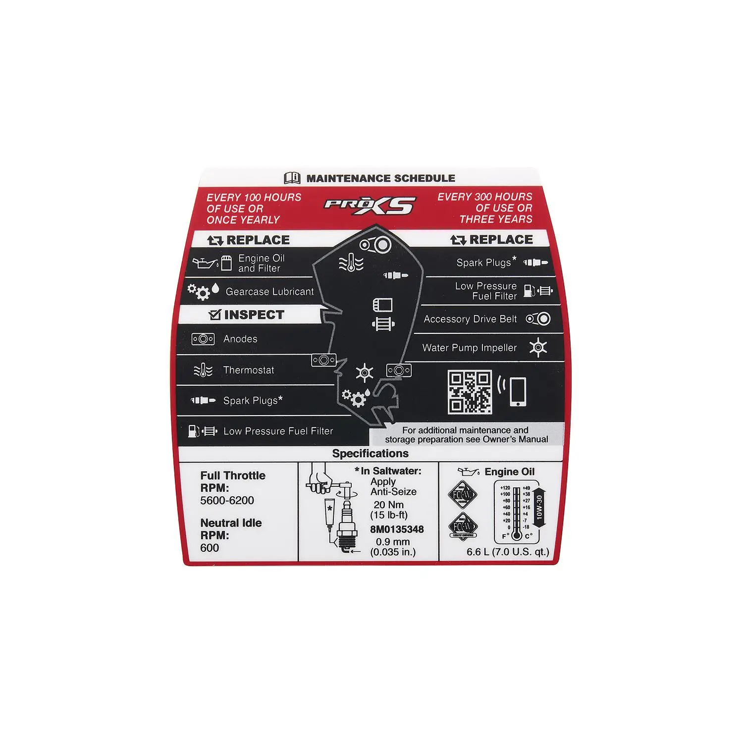 Mercury Maintenance Decal 8M0148538 for 4.6L V8 200-300hp Pro XS Outboards