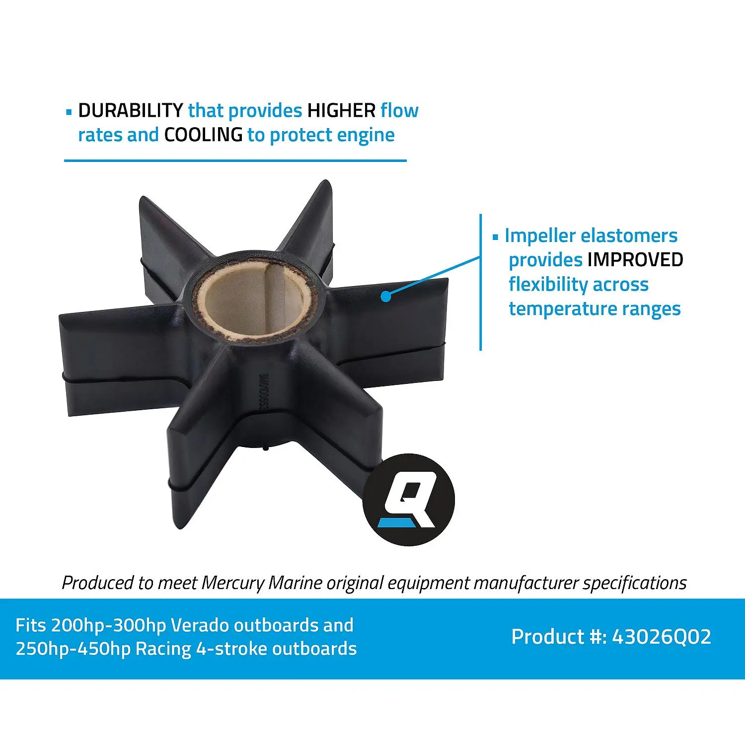 Quicksilver 43026Q02 Water Pump Impeller for OEM Mercury 200-300hp Verado and 250-450hp Racing 4-Stroke Outboards