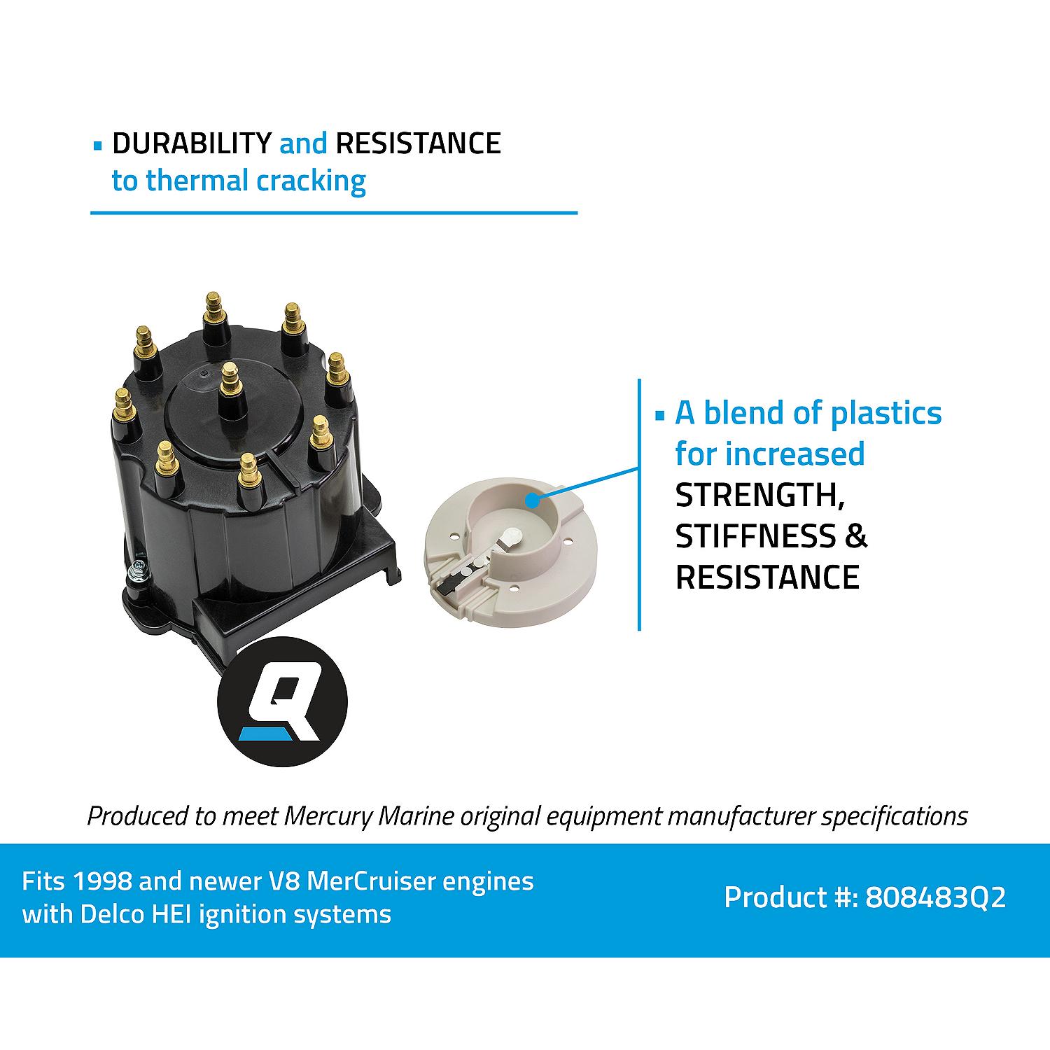 Quicksilver 808483Q2 Distributor Cap Kit for Marinized V8 Engines by General Motors w/ Delco HEI Ignition Systems