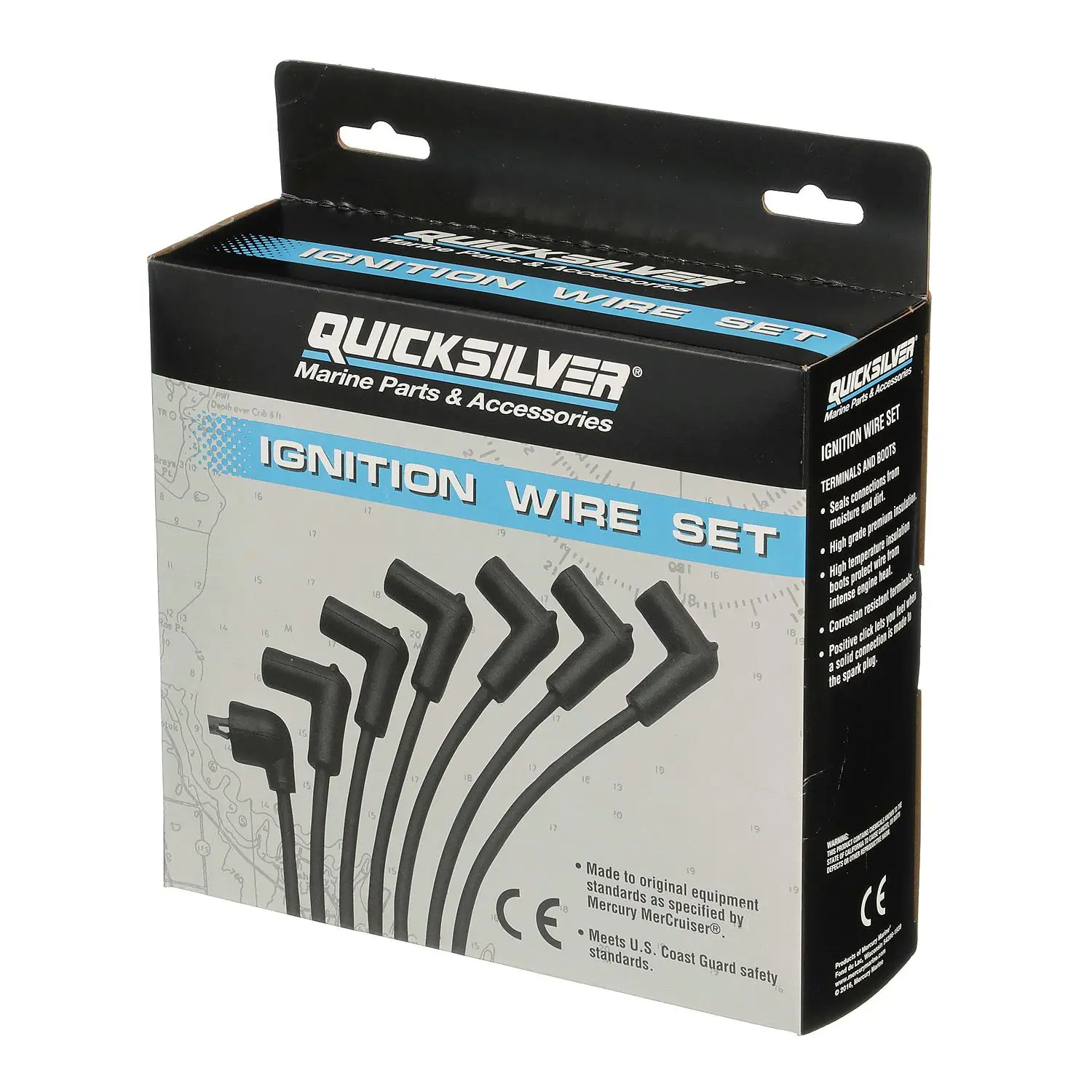 The Quicksilver brand is the leader in delivering uncompromising engine oils, parts and accessories to the marine industry for over 65 years. Quicksilver is the premier supplier of Mercury Marine original equipment replacement engine parts, oils, and accessories, but also works to serve all original equipment brands in the marine and powersports industries. It has earned a loyal following by providing the highest quality products that are tested through some of the most rigorous environments and testing procedures. No aftermarket company comes close to the level of research and design as Quicksilver; buying Quicksilver is buying performance, protection and peace of mind. u2022 Complete set of 8 red wires with boots at spark plug end u2022 Tailored to reach the correct plug location u2022 Designed for efficiency, endurance and durability in a marine engine environment u2022 u2022 u2022