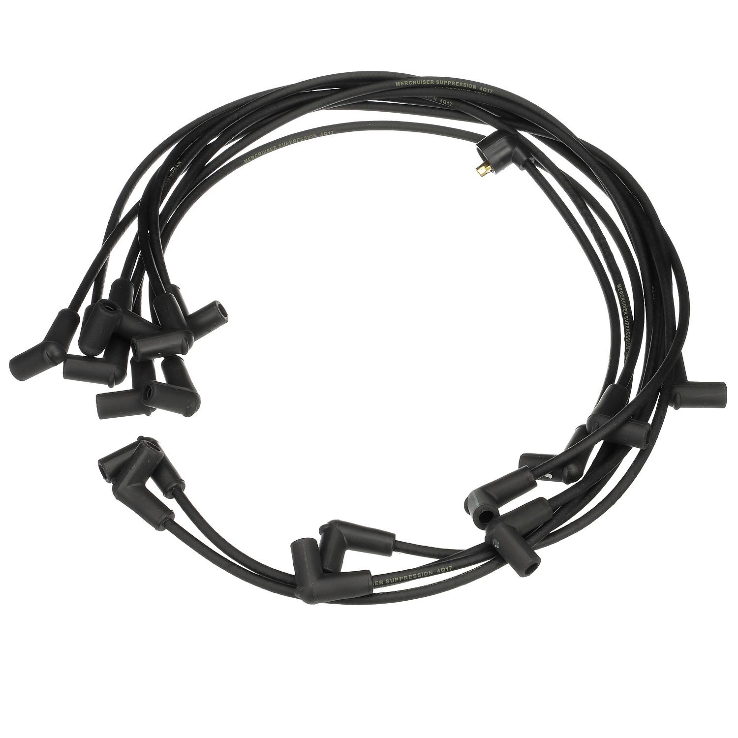 The Quicksilver brand is the leader in delivering uncompromising engine oils, parts and accessories to the marine industry for over 65 years. Quicksilver is the premier supplier of Mercury Marine original equipment replacement engine parts, oils, and accessories, but also works to serve all original equipment brands in the marine and powersports industries. It has earned a loyal following by providing the highest quality products that are tested through some of the most rigorous environments and testing procedures. No aftermarket company comes close to the level of research and design as Quicksilver; buying Quicksilver is buying performance, protection, and peace of mind. u2022 Complete set of spark plug wires with boots at spark plug end u2022 Tailored to reach the correct plug location u2022 Designed for efficiency, endurance and durability in a marine engine environment u2022 u2022 u2022