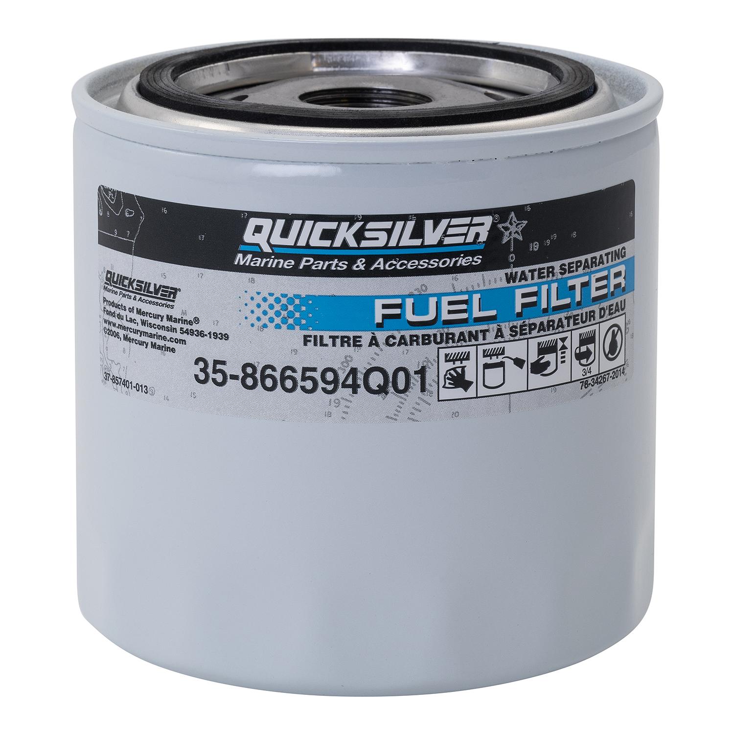 The Quicksilver brand is the leader in delivering uncompromising engine oils, parts and accessories to the marine industry for over 65 years. Quicksilver is the premier supplier of Mercury Marine original equipment replacement engine parts, oils, and accessories, but also works to serve all original equipment brands in the marine and powersports industries. It has earned a loyal following by providing the highest quality products that are tested through some of the most rigorous environments and testing procedures. No aftermarket company comes close to the level of research and design as Quicksilver; buying Quicksilver is buying performance, protection and peace of mind. u2022 10 micron replacement water separating fuel filter removes damaging or performance-robbing water and fuel-borne contaminants u2022 Internal epoxy coating and external paint resist corrosion from weather and fuel contaminants u2022 For gasoline fuel only u2022 Produced to meet Mercury Marine original equipment manufacturer specifications to best protect your MerCruiser engine u2022 u2022