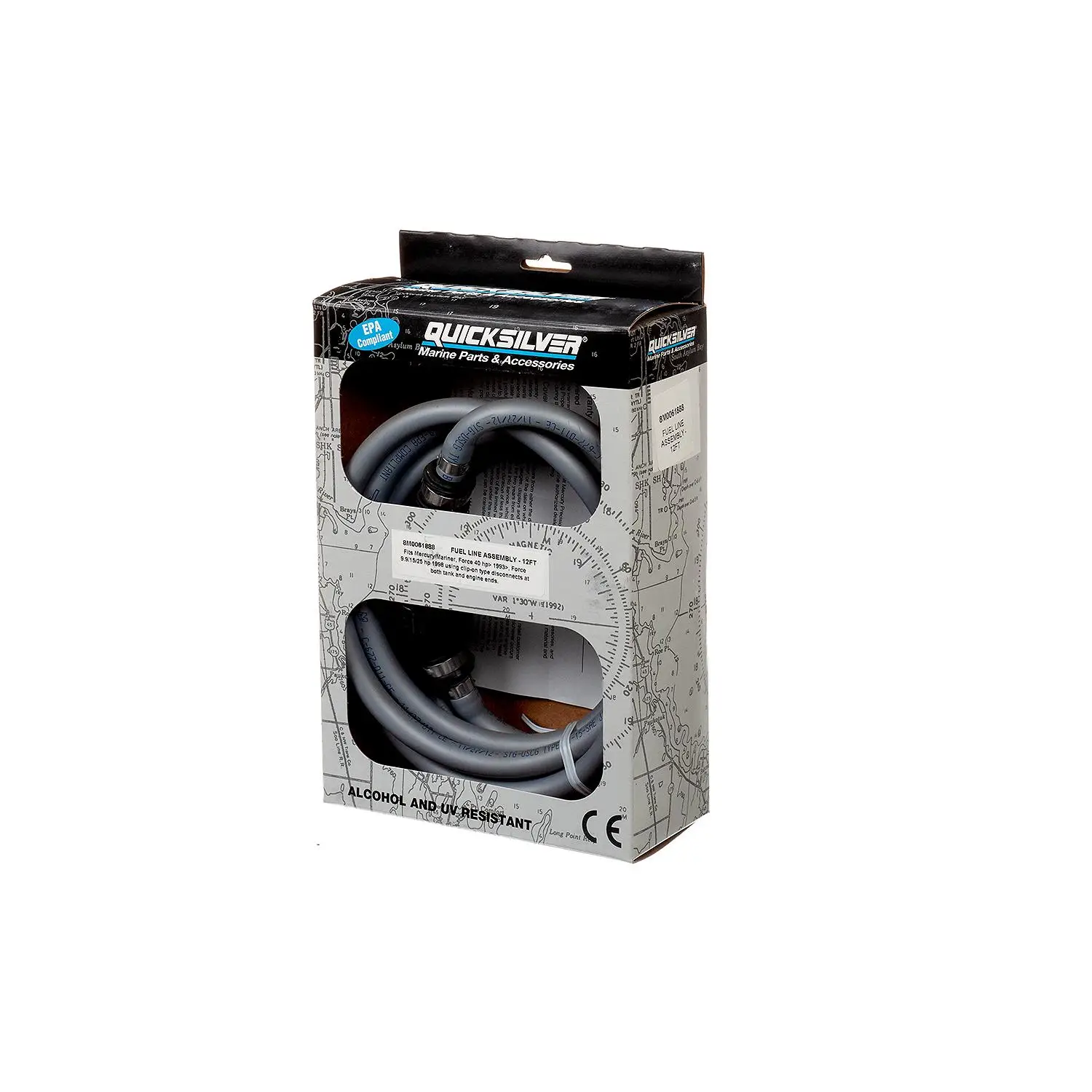 The Quicksilver brand is the leader in delivering uncompromising engine oils, parts and accessories to the marine industry for over 65 years. Quicksilver is the premier supplier of Mercury Marine original equipment replacement engine parts, oils, and accessories, but also works to serve all original equipment brands in the marine and powersports industries. It has earned a loyal following by providing the highest quality products that are tested through some of the most rigorous environments and testing procedures. No aftermarket company comes close to the level of research and design as Quicksilver; buying Quicksilver is buying performance, protection and peace of mind. u2022 Low permeation 5/16 in. (8mm) inside diameter fuel line hose u2022 Durable, flexible, long lasting fuel line u2022 Gray color helps reduce potential for vapor lock on warm days and exposure to sunlight u2022 Connectors for engine and tank end included u2022 Includes “EPA-MERC-PB15” primer bulb u2022