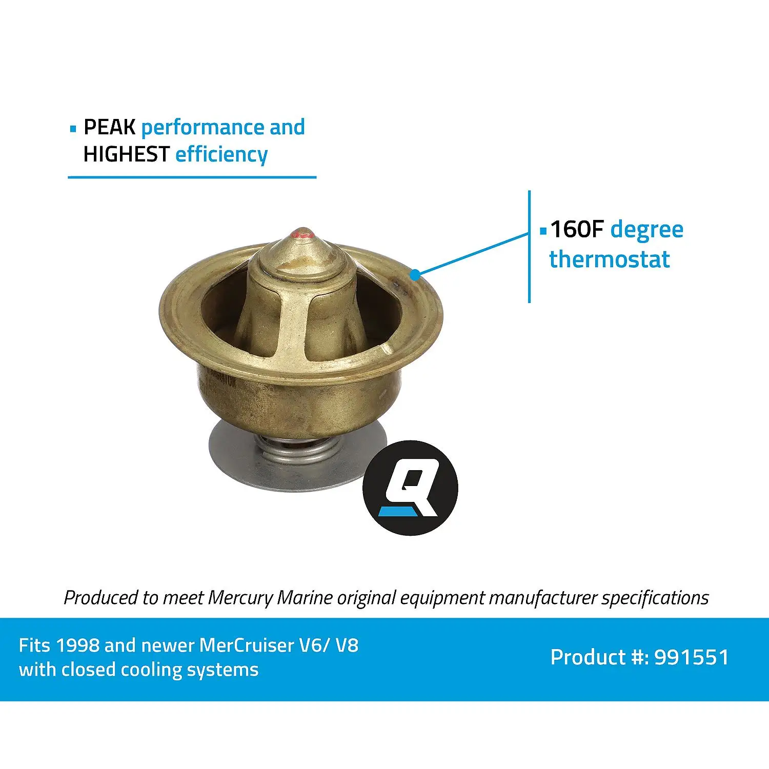 Thermostat 991551 is for 1998 and newer MerCruiser marinized V6 and V8 engines made by General Motors using closed cooling systems and requiring the use of the 160°F thermostat.