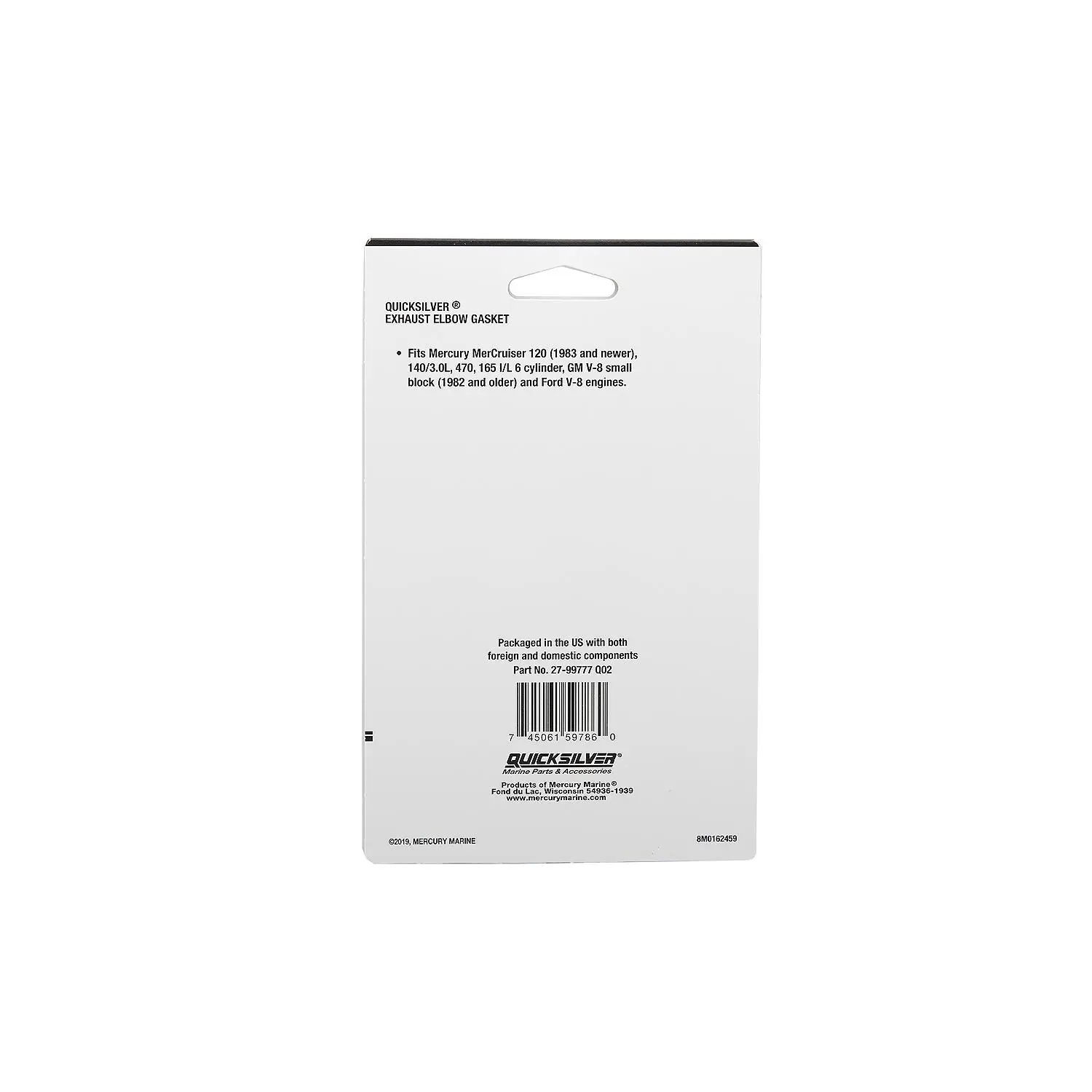 Exhaust elbow gasket 99777Q02 is for use on 120 series (1983 and newer), 140/3.0L inline 6-cylinder and V8 small block (1982 and older) MerCruiser sterndrive and inboard engines made by General Motors with standard cooling systems and V8 engines made by Ford Motor Company. See your owner’s manual or service manual for specific application and instructions.