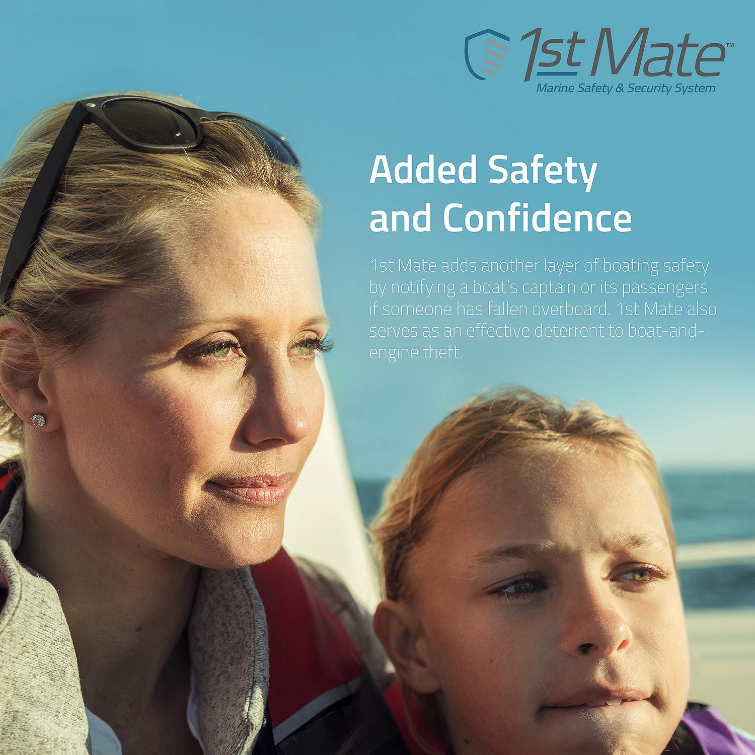 The new standard in marine safety and security, 1st Mate adds another layer of boating safety by notifying a boat’s captain or its passengers if someone has fallen overboard. 1st Mate also serves as an effective deterrent to boat-and-engine theft. u2022 1st Mate captain’s wearable fob kit u2022 Includes the captain’s fob, adjustable wristband & carabiner clip u2022 Works with 1st Mate vessel hub for Mercury SmartCraft engines u2022 Download the 1st Mate mobile device app on the App Store or Google Play Store u2022 1st Mate Vessel sold separately u2022